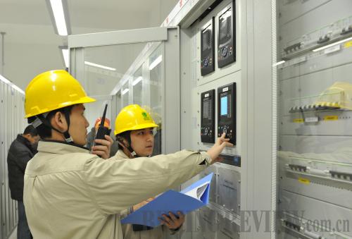 SMARTER GRIDS: Staff members of the Wuxi Power Supply Co. check equipment at the Xijing 220-kv intelligent transformer substation, the first of its kind in China (PAN ZHENGGUANG) |