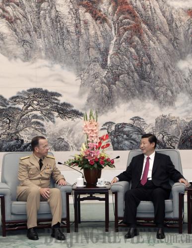 CORDIAL TALKS: Chinese Vice President Xi Jinping meets Chairman of the U.S. Joint Chiefs of Staff Mike Mullen in Beijing on July 11 (PANG XINGLEI) |