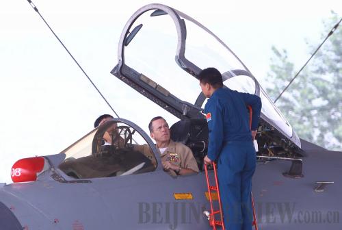 LOOKING AHEAD: Mike Mullen visits a PLA Air Force base in Jining, east China's Shandong Province, with Ma Xiaotian, Deputy Chief of the General Staff of the PLA on July 12 (XING GUANGLI)