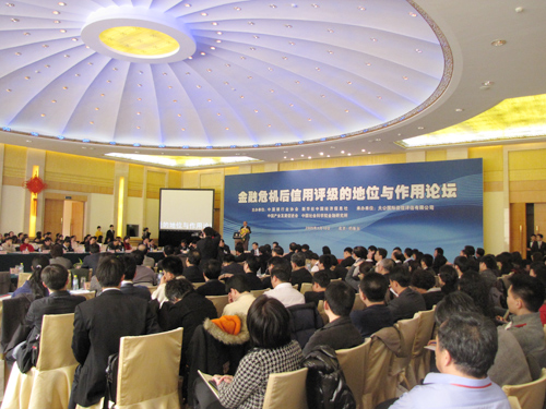 PASSIONATE DISCUSSIONS: Scholars and representatives from financial institutions participate in a forum on the role of credit rating agencies sponsored by Dagong Global Credit Rating Co. Ltd. in Beijing on January 10, 2009 (COURTESY OF DAGONG) |