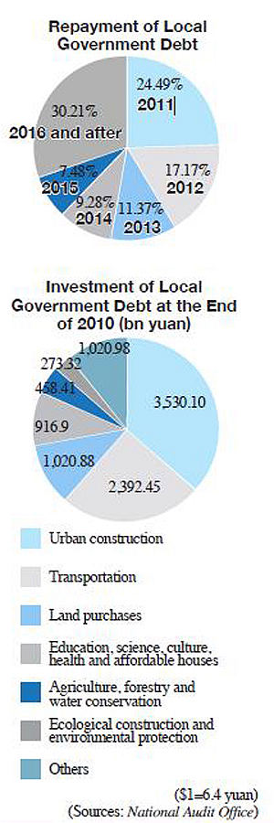 During the 11th Five-Year Plan (2006-10), the issuing of corporate bonds approved by the NDRC totaled 1.297 trillion yuan ($198.59 billion), in which quasi-municipal bonds totaled 347.5 billion yuan ($54.47 billion), accounting for only 26.8 percent of the total.