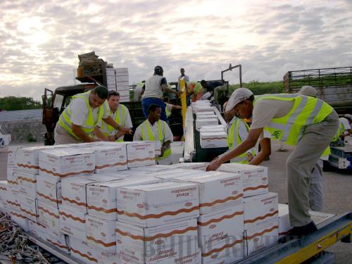 HELP ARRIVES: Workers unload the World Food Program's first airlifted humanitarian food aid to famine-ravaged Somalia in Mogadishu on July 27 (XINHUA/AFP) |