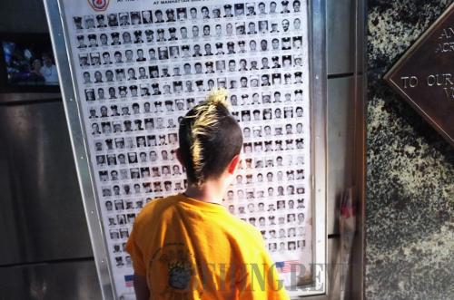 REMEMBERING HEROES: A boy looks at the faces of firefighters killed in the September 11, 2001 terrorist attacks at Ground Zero ahead of the 10th anniversary of the attacks (CFP)