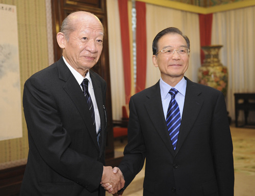 CALLS FOR COOPERATION: Chinese Premier Wen Jiabao meets Taizo Nishimuro, chair of the Japanese side of the Fifth 21st Century Committee for China-Japan Friendship, in Beijing on October 22 (XIE HUANCHI) |
