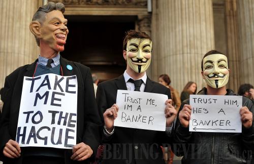 PREOCCUPIED: Protesters from the "Occupy London Stock Exchange" rally outside St. Paul's Cathedral in London on October 29 (XINHUA/AFP)
