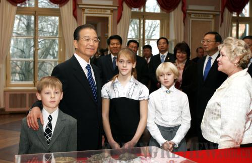 EDUCATIONAL TIES: Chinese Premier Wen Jiabao visits a high school in St. Petersburg on November 6 (YAO DAWEI) |