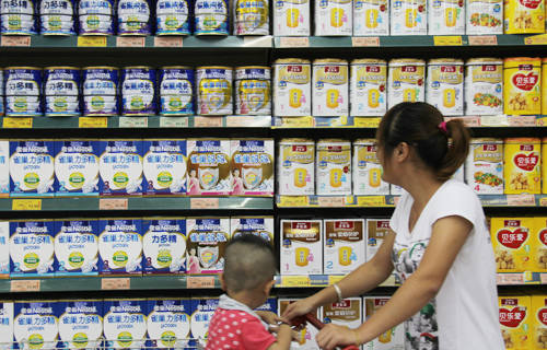 FOREIGN FORAYS: A consumer chooses among foreign baby formula products in Linyi, Shandong Province (ZHANG CHUNLEI) |