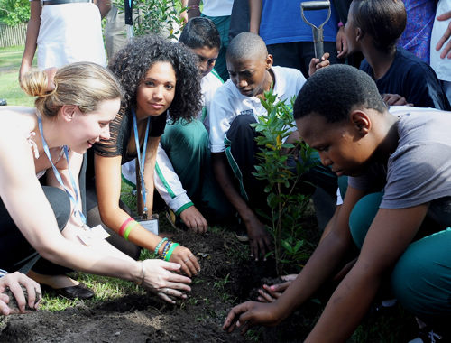 A GREEN FUTURE: Green youth ambassadors from Argentina and South Africa plant a tree together with local middle school students in Durban on November 30 (LI QIHUA) |