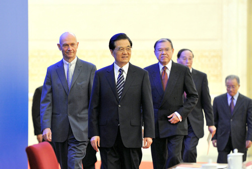 President Hu also urged the recognition of China's full-market economy status as soon as possible, in addition to relaxed restrictions on hi-tech commodity exports to China.