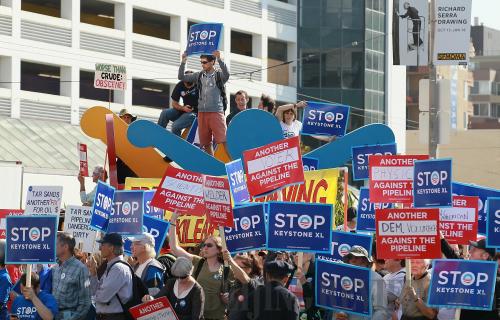 OIL WOES: Protesters against the construction of the Keystone XL oil pipeline demonstrate in San Francisco on October 25, 2011. U.S. President Barack Obama has put the project on hold due to environmental concerns (CFP) |