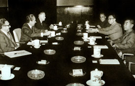 The official negotiation process of the Shanghai Communiqué was pretty hard during Nixon's visit. The two sides, headed respectively by Qiao and Kissinger, had in all 11 rounds of talks during seven days.
