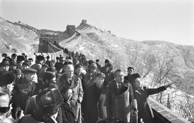 SCALING NEW HEIGHTS: U.S. President Richard Nixon visits the Great Wall in Beijing on February 24, 1972 (XINHUA) |