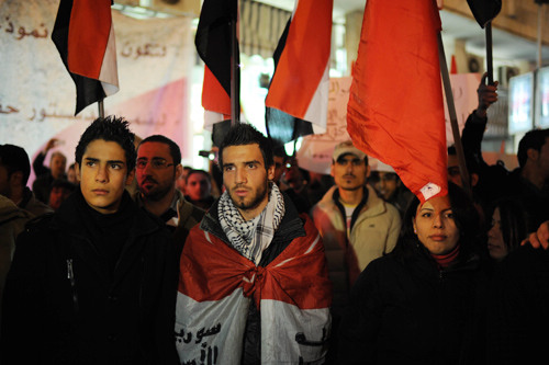 VOICE: Syrians participate in a rally in Damascus on February 21 to protest against Article 3 of the new draft Constitution, which states the president of the country should be Muslim (QIN HAISHI) |