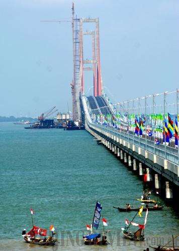 BRIDGE TO COOPERATION: The 5.4-km Suramadu Bridge, built by the China Road and Bridge Corp. along with Indonesian partners, links the islands of Java and Madura (YUE YUEWEI)
