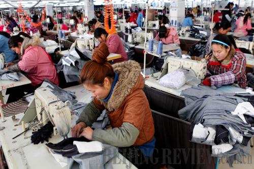 LABOR INTENSIVE: Workers at a garment factory in Ganyu County, east China's Jiangsu Province, make clothes for overseas clients (XINHUA) |