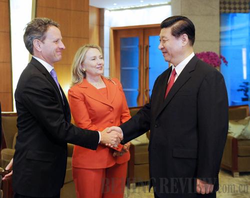 THE TIES THAT BIND: Chinese Vice President Xi Jinping says determination, confidence, patience and wisdom are all crucial for China and the United States to establish a new relationship as major powers at a meeting with U.S. Secretary of State Hillary Clinton and Treasury Secretary Timothy Geithner in Beijing on May 3 (LI TAO) |