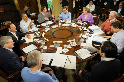 ANNUAL GATHERING: Leaders participate in a working session during the G8 Summit at the Camp David presidential retreat in Maryland, the United States, on May 19 (CFP)