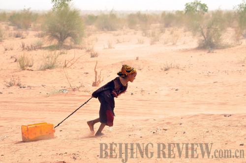 DESERTIFICATION: A child walks in a desert area near the Mbera refugee camp in south Mauritania on May 3 (XINHUA/AFP)