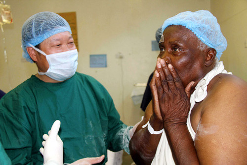 BRIGHT FUTURE: A Zimbabwean patient regains sight after receiving a cataract surgery performed by Chinese doctors in Harare in November 2010 (LI PING) |