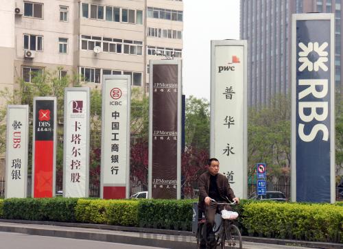 FINANCIAL TITANS: Signs of global leading financial institutions line Beijing's Financial Street (IC) | While the big four grab market shares in China, domestic firms are busy playing catch-up. With localization efforts in full swing, domestic players can step out on to a more even playing field.