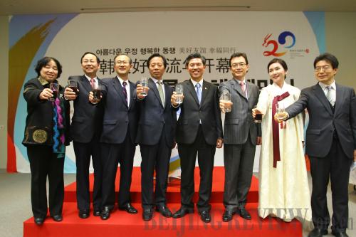 TO FRIENDSHIP: Chinese and ROK officials extend a toast at the opening ceremony of the Year of China-ROK Friendly Exchanges in Seoul on April 3 (YAO QILIN) |