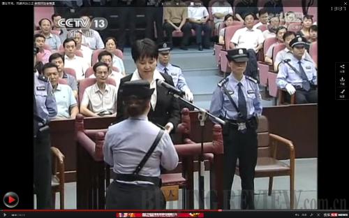 VERDICT DELIVERED: Bogu Kailai accepts the verdict of the Intermediate People's Court of Hefei in east China's Anhui Province on August 20 (CCTV SCREENSHOT)
