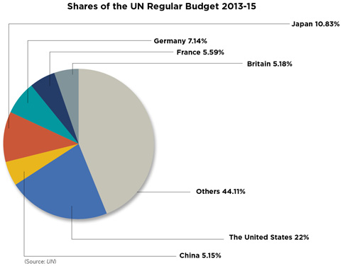 UN member states should pay their assessed contributions timely and in full so as to ensure the normal operation of the UN and the smooth implementation of its missions. However, some countries often violate their obligations and default their UN fees deliberately, particularly the United States. As the world's premier power, the United States should naturally contribute the largest share of UN fees. After the adjustment, the United States' share for the regular budget will remain unchanged at 22 percent, still the highest in the world. But its actions of payment default and coercing the UN through such defaults often results in financial disorder.
