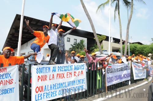 CRYING FOR PEACE: Supporters of the Central African Republic's President Francois Bozize rally on January 10 in Libreville, Gabon, as Bozize arrived to conduct peace talks with rebels (XINHUA/AFP)