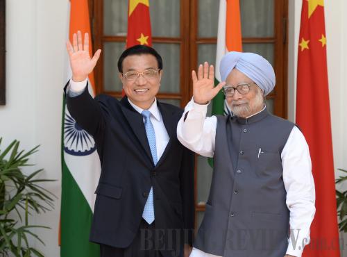 LOOKING AHEAD: Chinese Premier Li Keqiang meets with Indian Prime Minister Manmohan Singh in New Delhi on May 20 (MA ZHANCHENG)