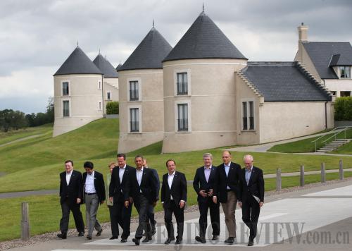 A COMMON MARKET: G8 leaders take a break during their summit at the Lough Erne resort in Northern Ireland, the UK, on June 18 (YIN GANG) |