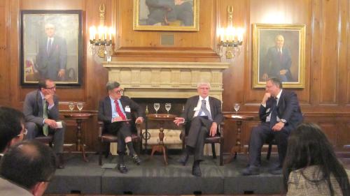 BRAINSTORMING: At a panel discussion in New York City, participants including Dr. Lionel Vairon (second right) share their view on China's rise (HUANG WEI) |
