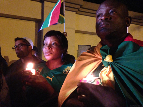 MOURNING A GREAT LEADER: South Africans light candles outside the Johannesburg home of South Africa's former President Nelson Mandela on December 6, who passed away at the age of 95 after a prolonged lung infection (XINHUA) |