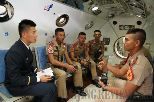 ACADEMIC EXCHANGE: Around 100 students and officers from the Indonesian Naval Academy visit the PLA Navy Submarine Academy in Qingdao on April 21 (XIONG LIBING) |