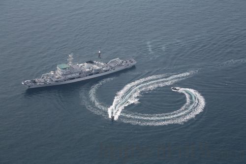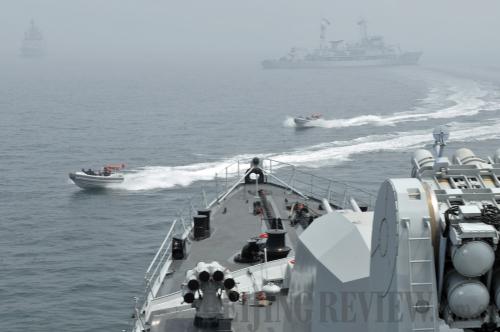 ON THE SEA: Warships from the participating countries coordinate closely in the exercise (QIU HAOHAN) |