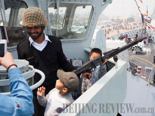 NAVY OPEN DAY: Visitors show great interest in both the military facilities and soldiers on the Pakistani naval ship Shamsheer (YIN PENGXUAN) |