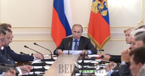 SEEKING A STRATEGY: Russian President Vladimir Putin hosts a cabinet meeting in Moscow on July 30 to discuss measures to deal with Western sanctions (XINHUA/AFP) |