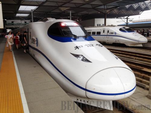 ALL ABOARD: Passengers board a high-speed train at a platform in Suzhou Railway Station on June 15 in Suzhou, east China's Jiangsu Province (CFP) |
