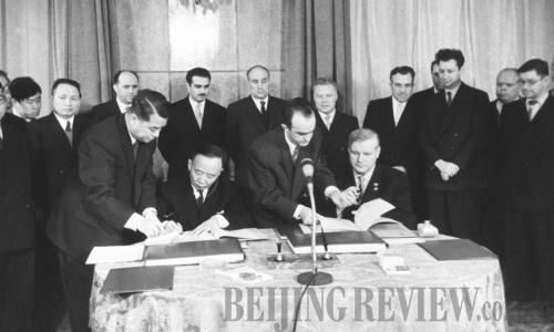 DAYS OF OLD: China and the Soviet Union sign a science and technology cooperation protocol in Moscow on January 18, 1958 (XINHUA) |