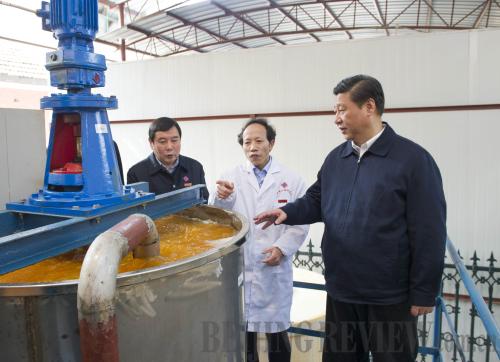 FIRSTHAND INFORMATION: President Xi Jinping (right) visits the Chinese National Engineering Research Center for Control and Treatment of Heavy Metal Pollution at Central South University in Changsha, Hunan Province, on November 4, 2013 (WANG YE) |
