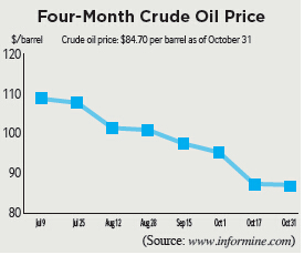 To some extent, the oil price drop looks like an economic action against Russia. Many Russian observers believe that the United States and its allies plan to hurt the Russian economy through driving down oil prices, and then cause social turbulence in the country. Russian President Vladimir Putin said on October 17 that the global economy would collapse if oil price was allowed to remain at around $80 a barrel for too long.