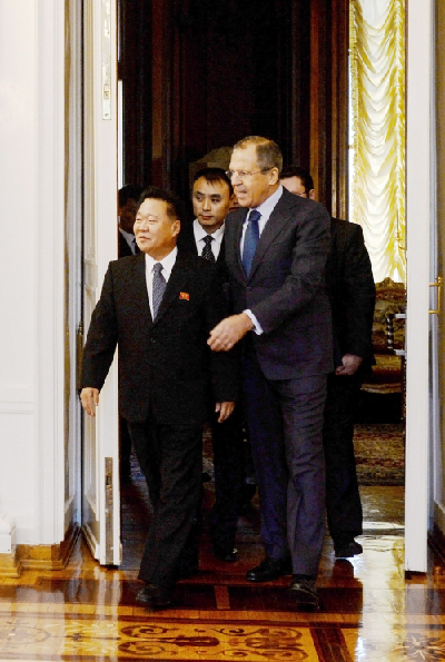 Choe, a member of the Presidium of the Political Bureau and Secretary of the Central Committee of the Worker's Party of Korea, met with Russian President Vladimir Putin at the Kremlin and passed along a message from Kim. The two sides also committed to taking steps to raise the level of their political dialogue and finding ways to intensify economic and military cooperation. Most notably, the two sides also discussed how to restart the six-party talks on the Korean Peninsula nuclear issue and foster a favorable environment. Russian Foreign Minister Sergei Lavrov said that Pyongyang is preparing to restart the talks without preconditions.
