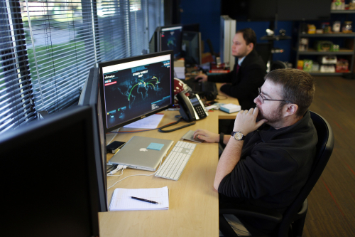 CYBERSPACE INVESTIGATION: Information analysts at FireEye, the security firm hired by Sony to investigate the cyberattack against Sony Pictures Entertainment, work at the company's office in Milpitas, California, on December 29, 2014 (CFP) |