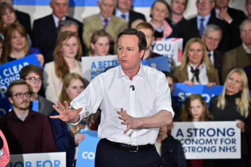 CAMPAIGNING: British Prime Minister and Conservative party leader David Cameron gives a speech at a general election rally at the Corsham School in Chippenham, southwest England, on March 30 (XINHUA/AFP) |