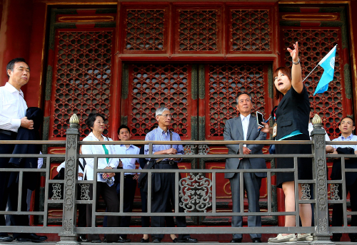Members of the Japanese delegation visit Beijing's Palace Museum on May 23 (XINHUA) |