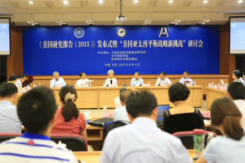Fu Ying (third left) attends the launch ceremony for the American Research Report 2015 at the Institute of American Studies at the Chinese Academy of Social Sciences in Beijing on June 4 (COURTESY OF AN GANG) |