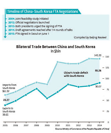 The signing of the China-South Korea free trade agreement (FTA) marks the beginning of an auspicious future--if everything goes as planned, the annual trade volume will double that of 2014 within the next five years.
