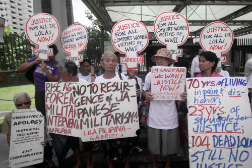 Filipino women protest in Manila on August 14, demanding that the Japanese Government apologize and make compensation for the country's wartime atrocities during WWII (XINHUA) |