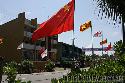 FROM CHINA: A Chinese flag flies in front of the new office building of the Galle branch of the Sri Lanka Red Cross Society. The complex was built as part of China’s efforts to help reconstruct tsunami-stricken areas in Sri Lanka