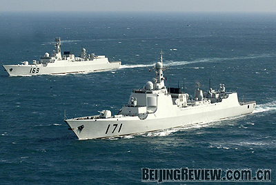 The UN Security Council has adopted several resolutions authorizing countries to take anti-piracy actions off Somalia's coast. The Somali Transitional Federal Government has also called on other countries to fight pirates in its territorial sea. A Chinese naval fleet consisting of two destroyers and one supply ship set out for Somali waters from Sanya in south China's Hainan Province on December 26. Their mission is to protect Chinese ships and crew as well as ships carrying humanitarian relief material for international organizations including the World Food Program. Chinese naval vessels will observe UN Security Council resolutions and international law while carrying out their escort mission. They are also ready to work with convoy warships of other countries and take part in humanitarian relief tasks when necessary.