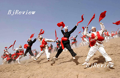 Ansai, a county located in Shaanxi Province, became famous for its waist drum dance, large-scale folk event that dates back to the Spring and Autumn Period (770 B.C.-476 B.C.) in Chinese history and is popular on the Loess Plateau in central China. Farmers there celebrate festivals by staging a large-scale Ansai Waist Drum Dance. The number of drummers performing together can reach from 500 to 1,000 and the energy of performers is a sight not to be forgotten. In 1996, Ansai County was named "the hometown of the Chinese waist drum." Today, Ansai Waist Drum Dance is facing a big challenge with the decreasing number of performers, even in Ansai County itself. Urgent attention is needed to ensure continuity of this art form.